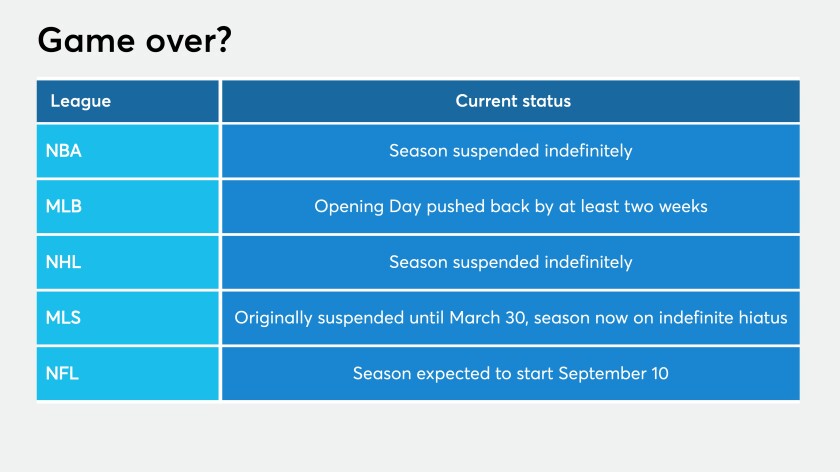 Some institutions may rethink their sponsorship deals with professional sports teams now that several leagues have suspended their seasons because of the pandemic.